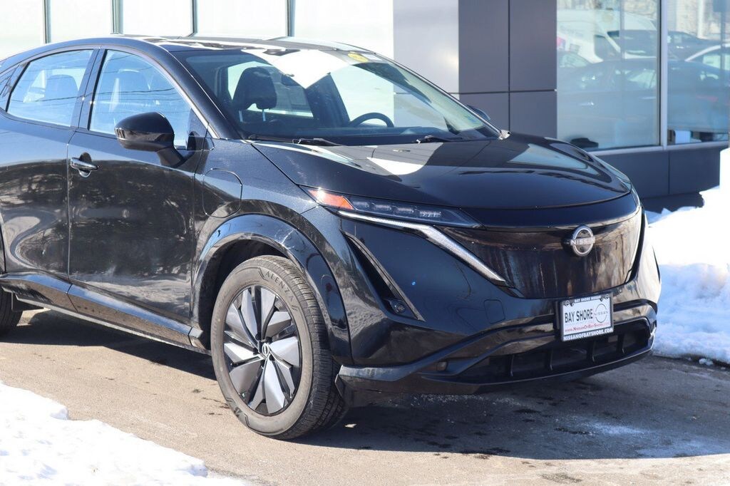 PSD Nissan of Bay Shore is proud to present you with another True Market Priced Pre-Owned Vehicle. This 2024 Nissan Ariya ENGAGE e-4ORCE Nissan Certified is loaded with the following Factory Options: Nissan Certified Certified, 19" Alloy Wheels, 4-Wheel Disc Brakes, 6 Speakers, 8.896/7.679 Final Drive Ratio, ABS brakes, Air Conditioning, Alloy wheels, AM/FM radio: SiriusXM, Auto High-beam Headlights, Automatic temperature control, Brake assist, Bumpers: body-color, Carpeted Floor Mats & First Aid Kit, Delay-off headlights, Driver door bin, Driver vanity mirror, Dual front impact airbags, Dual front side impact airbags, Electronic Stability Control, Emergency communication system: NissanConnect EV & Services, Four wheel independent suspension, Front anti-roll bar, Front Bucket Seats, Front Center Armrest, Front dual zone A/C, Front reading lights, Heads-Up Display, Heated door mirrors, Heated Front Bucket Seats, Heated front seats, Heated rear seats, Heated steering wheel, Illuminated entry, Illuminated Kick Plates, Knee airbag, Leather steering wheel, Leatherette Seating Surfaces, Low tire pressure warning, Memory seat, Navigation system: Nissan Door to Door Connected Navigation, Occupant sensing airbag, Outside temperature display, Overhead airbag, Panic alarm, Passenger door bin, Passenger vanity mirror, Power door mirrors, Power driver seat, Power steering, Power windows, Radio: AM/FM Audio System, Rear anti-roll bar, Rear reading lights, Rear seat center armrest, Rear side impact airbag, Rear window defroster, Rear window wiper, Remote keyless entry, Security system, Speed control, Speed-sensing steering, Speed-Sensitive Wipers, Split folding rear seat, Spoiler, Steering wheel mounted audio controls, Telescoping steering wheel, Tilt steering wheel, Traction control, Trip computer, and Variably intermittent wipers!!